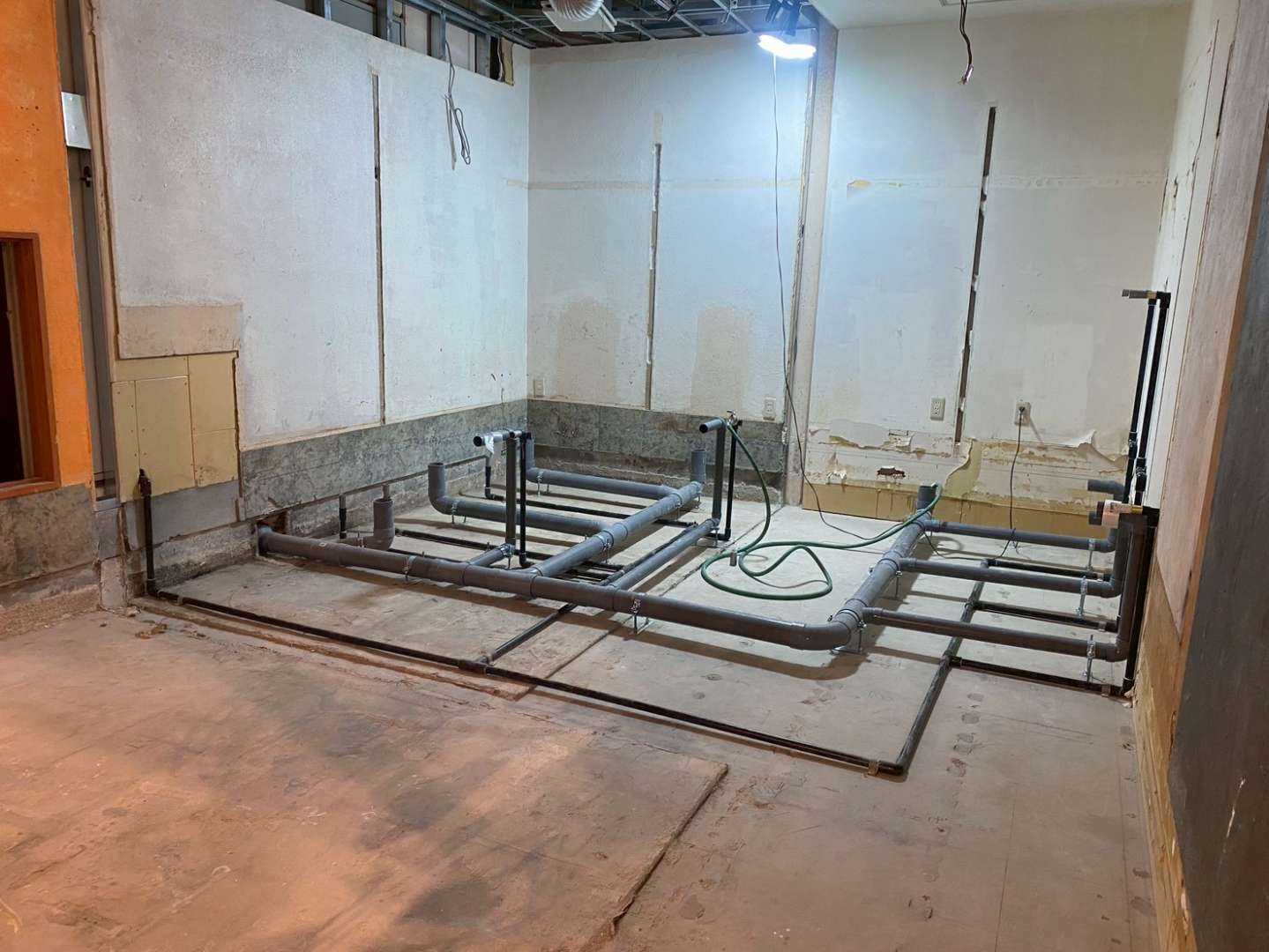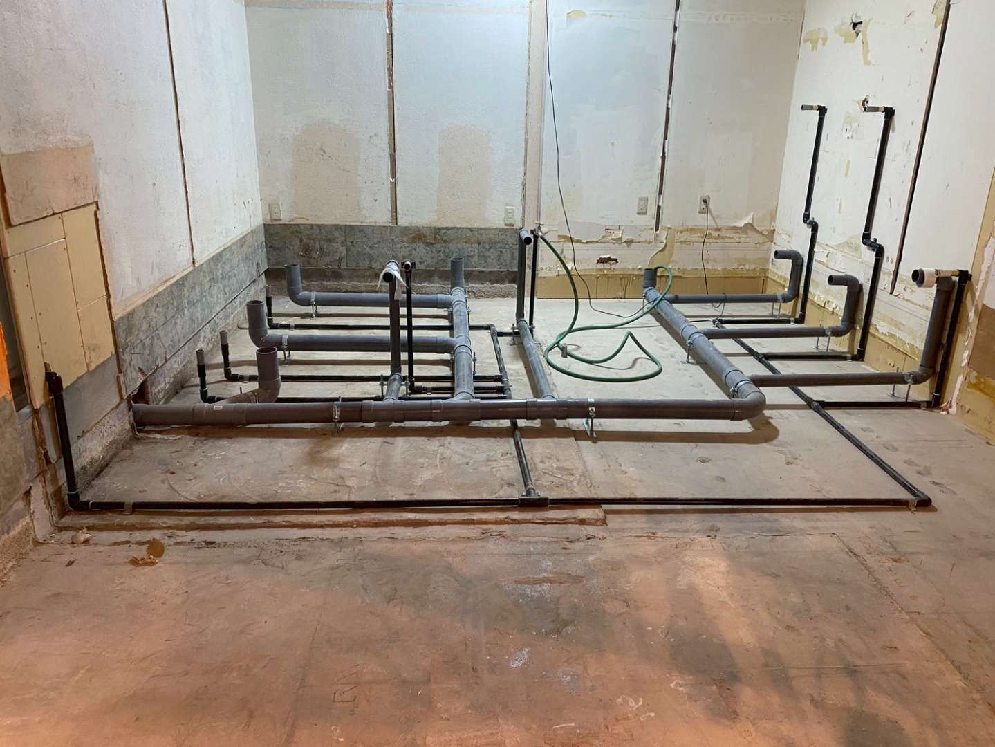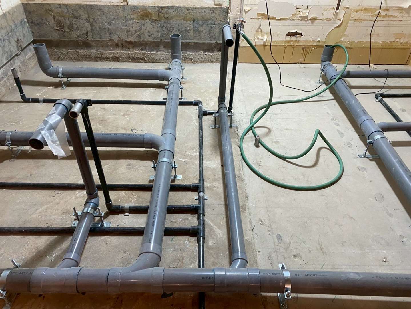 千葉県柏市にて、新規開業予定の飲食店の給排水設備工事を行いました。厨房設備の充実に加え、今後のレイアウト変更にも柔軟に対応できるよう、将来を見据えた配管設計を行っております。